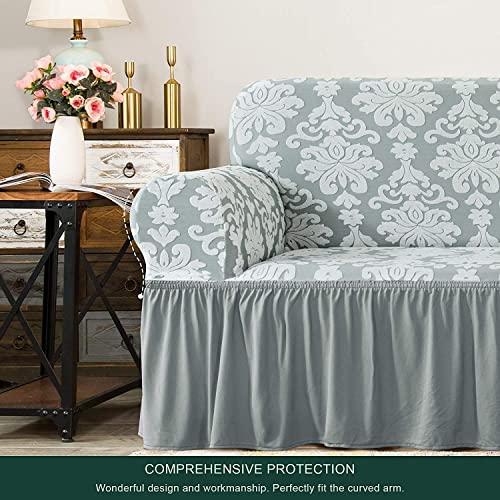 Fodere Per Divano Elasticizzate 1 Pezzo, Fodere Per Poltrone In Tessuto Damascato Jacquard, Fodera Antiscivolo In Poliestere Con Motivo Floreale In Spandex E Gonna (Grigio chiaro,2 posti(145-180 cm))