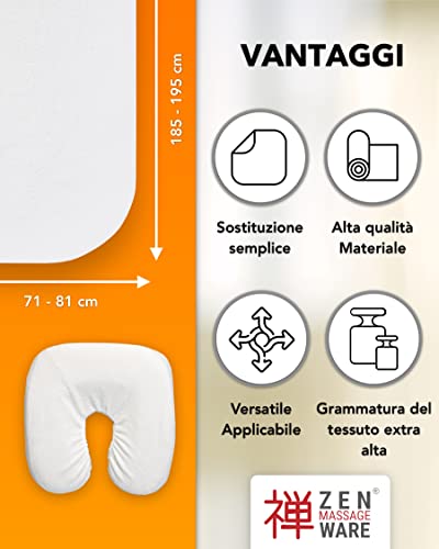 Set di fodere elastiche Zen per lettino da massaggio e poggiatesta | soffice spugna | extra facile da pulire e lavabile a 60° | OEKO TEX 100 | per tutti i comuni lettini e panche da terapia (Bianco)