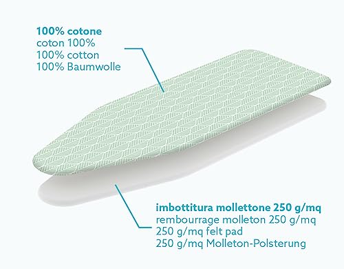 MISURA XL: la misura 140x55cm si adatta perfettamente agli assi da stiro con dimensione massima di 130x45cm