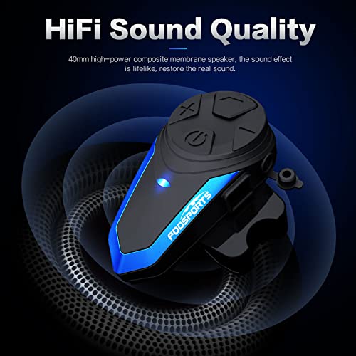 Fodsports BT-S3 Interfono Moto Bluetooth Singolo,Auricolari per Casco da Moto(1 Confezione/Blu/Microfono Duro)