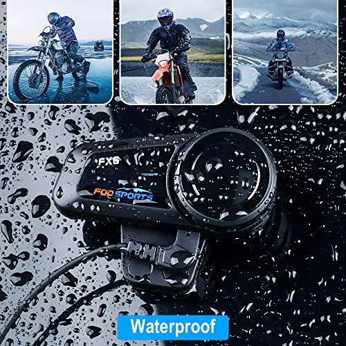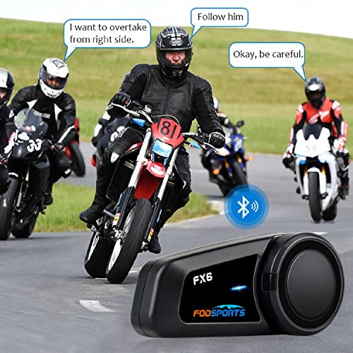 Fodsports FX6 Interfono Bluetooth Casco per Moto,Bluetooth5.0 Auricolare per Supporta 6 Persone che Parlano Allo Stesso Tempo Entro 1000Mt,Rispondere/Fare Chiamate,FM,GPS,HIFI(2Pz)