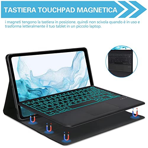 【Custodia Tastiera per Samsung Galaxy Tab S8+/S7+/S7 FE 12.4''】La tastiera wireless è perfettamente compatibile con il tuo Samsung Galaxy Tab S8 Plus 2022 12,4 pollici (Modelli SM-X800/X806), Samsung Galaxy Tab S7 FE 2021 12,4 pollici (Modelli SM-T730/T733/T736/T738), Samsung Galaxy Tab S7 Plus 2020 12,4 pollici (Modelli SM-T970/T975/T976). Il supporto S-Pen è perfetto per caricare e trasportare il vostro S-Pen.