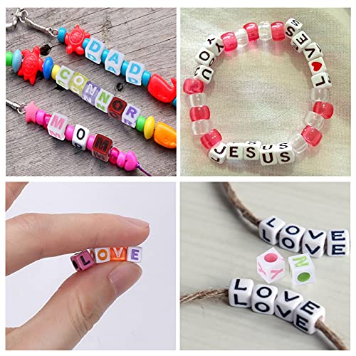 FOGAWA 1000pcs di Perline Acriliche 6mm Multicolore Perline con Lettere Rotonde Kit di Perline con Lettere Dell'alfabeto con Corda di Cristallo 8pcs di Bracciale per Gioielli Artigianato