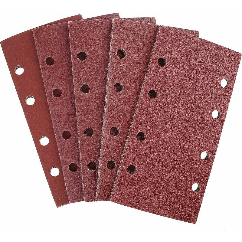 Ossido di alluminio premium: la resistente grana di ossido di alluminio fornisce un taglio più veloce, lunga durata e antistatico, antiaderente - lo speciale rivestimento anti-intasamento in stearato aumenta le prestazioni e la durata Durevole: usiamo il materiale giusto, la carta vetrata è dotata di una base di carta spessa, realizzata in allumina di alta qualità con sabbia resistente all'abrasione, il sistema di incollaggio in resina ad alta resistenza aumenta la durata della vita Facile cambio: il retro durevole rende il cambio della carta vetrata più facile, conveniente e più veloce Carta vetrata a grana diversa: questa carta vetrata include tipi di grana 40/60/80/120/240. Può soddisfare tutti i requisiti di lucidatura Funzione: adatto per levigare e lucidare metallo, non metallo, legno, gomma, pelle, plastica, pietra, vetro e altri materiali. Molto pratico ed efficace Carta vetrata all'ossido di alluminio Caratteristiche Il supporto in carta vetrata a strappo consente una