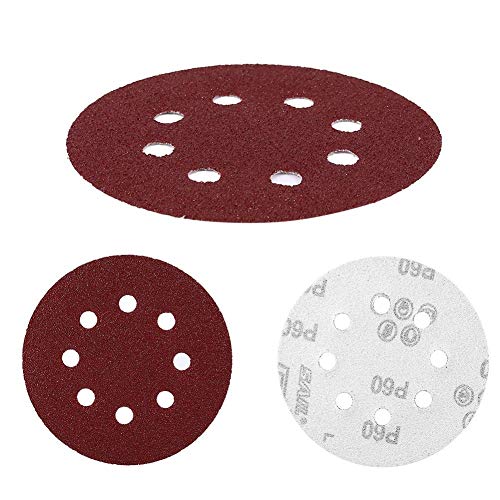 Fogli abrasivi rotondi con velcro da 10 pezzi | Carte abrasive, 8 fori 5 pollici / 125 mm, per levigatrici orbitali/levigatrici multiple per levigatura/lucidatura/rimozione della ruggine(180#)