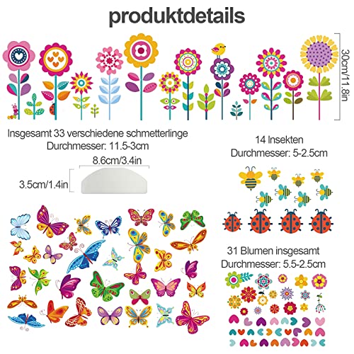 Decorazione primaverile perfetta: decorate la vostra casa con queste splendide farfalle e fiori per la ciliegina sulla vostra primavera. Ogni adesivo per finestra porta vivacità colorata alla decorazione della tua finestra.