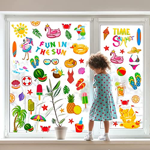 8 Fogli Adesivi Per Finestre Hawaiani,Statico Adesivi Finestre Frutta Luce del Sole Pellicola Vetro Decorative Vetrofanie Estate Stickers Statici