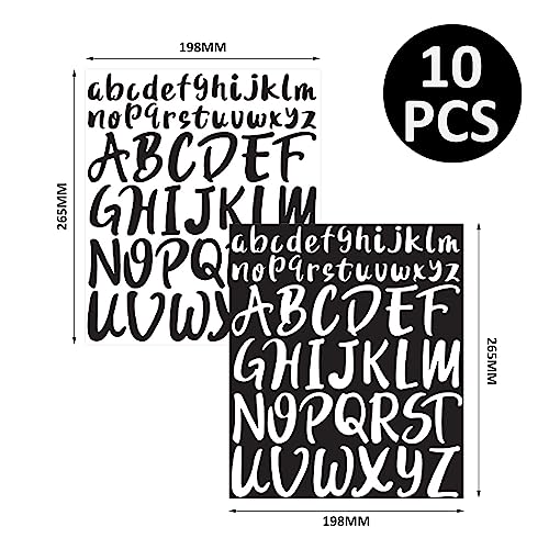 10 fogli di adesivi per lettere dell'alfabeto in vinile, autoadesivi e impermeabili, per cartellini fai da te, poster, cassette delle lettere, fai da te, ecc. (bianco, nero)