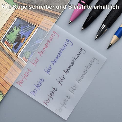 Adesivo rimovibile: è facile da attaccare o rimuovere e non lascia residui sul lato. È possibile utilizzare una penna a sfera o pennarelli per lavagna bianca sottili per scrivere testo su foglietti adesivi trasparenti senza danneggiare il libro.