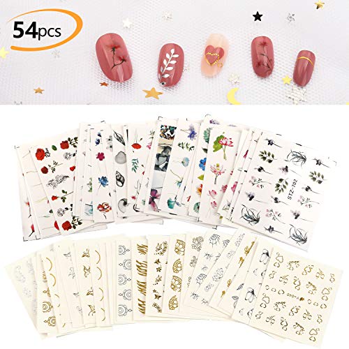 54 Fogli Adesivi Unghie Decalcomania Floreali 3D Nail Stickers Water Decals Nails Fai da Te Arte Unghie Autoadesivi Nail Art Colore Misto Adesivi (Trasferimento ad Acqua)