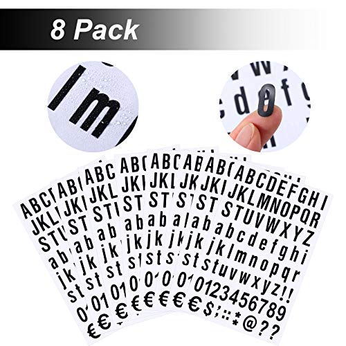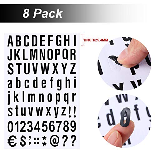 Kit di 8 Fogli di Autoadesivi di Numeri Lettere in Vinile, Adesivi di Numeri di Cassetta Postale per Segni, Finestra, Porta, Automobili, Casa, Affari, Numero Indirizzo (1 Pollice, Nero)