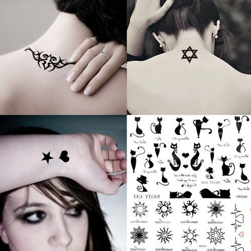 5 fogli Body Art Moda Adesivi rimovibile impermeabile tatuaggi temporanei - Patten tipo: Ali, lettere, gatti, Totem, Cardiogram