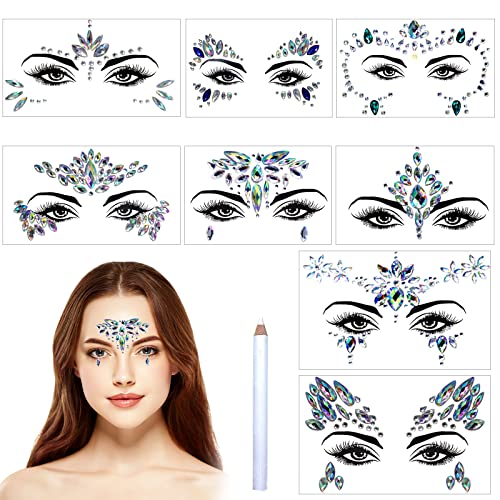 8 Fogli Brillantini Make Up Glitter Brillantini Viso Gemme Strass Adesivi Face Gems per Corpo Occhi Autoadesivi Arcobaleno Donna Accessori Festival e Decorazioni Nail Art Brillantini Make Up