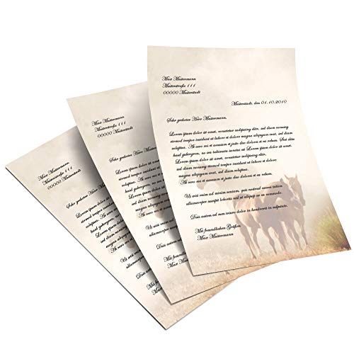 50 fogli di carta da lettera decorati Animali CAVALLI NELLA NEBBIA DIN A5 - Paper-Media