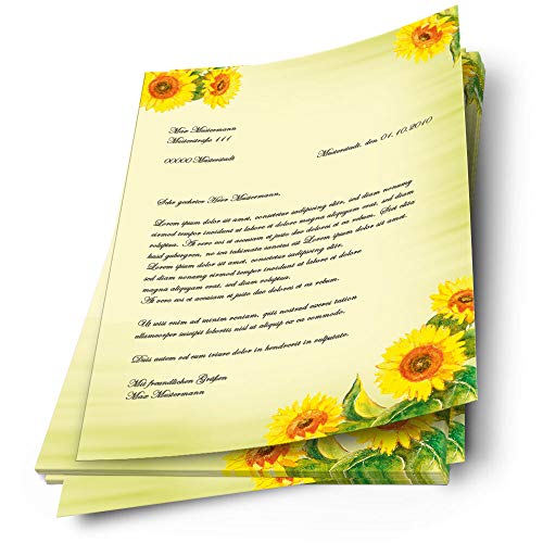 250 fogli di carta da lettera decorati Fiori & Petali Motivo Fiori GIRASOLI DIN A4 - Paper-Media