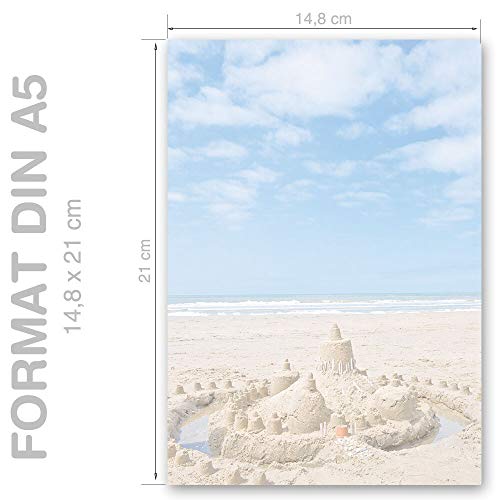 100 fogli di carta da lettera decorati Motivo da viaggio CASTELLO DI SABBIA DIN A5 - Paper-Media