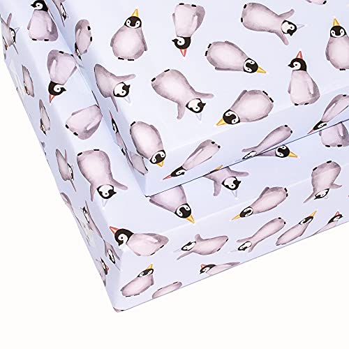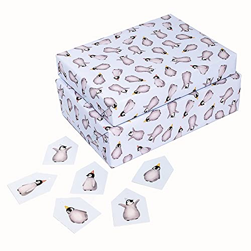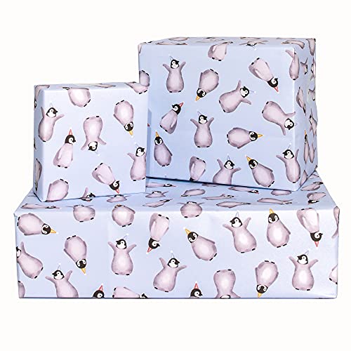 6 fogli di carta da regalo di compleanno - pinguini con cappelli da festa - confezione regalo blu per ragazzi - ragazze - uomini - riciclabile - festa del bambino - da Central 23