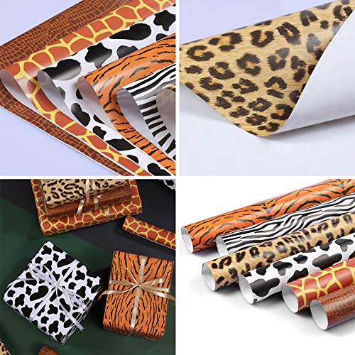 12 fogli di carta da imballaggio e 2 rotoli di nastro, 6 tipi di carta da imballaggio a tema animale, inclusi carta da regalo zebra, leopardo, tigre, serpente, giraffa e mucca, 2 fogli di ogni tipo, che possono soddisfare le varie esigenze di imballaggio .