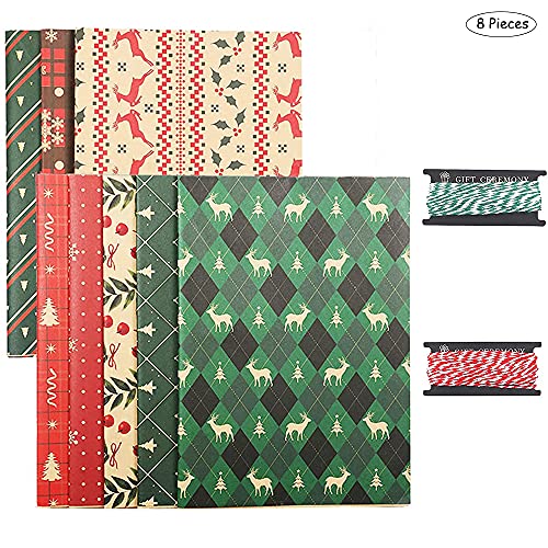 8 Fogli Carta da Regalo di Natale, 70x50cm Carta Regalo Natale, Carta da Regalo da Regalo, Riciclabile, con 8 Diversi Motivi, per Confezioni Regalo per Feste di Natale, Artigianato Fatto a Mano