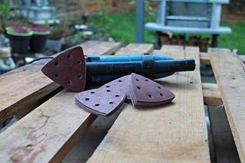 60 fogli Delta di carta abrasiva eccentrica + 1 foglio gratis, misure 93 x 93 x 93 mm, 6 fori, grana mista, ogni 10 fogli K40/K60/K80/K120/K180/K240