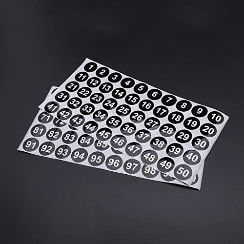 inclusi 5 fogli neri e 5 fogli rossi adesivi numero 1-50, e 5 fogli neri e 5 fogli rossi adesivi numero 51-100. Ogni adesivo misura 2,54 mm/1 pollice di diametro.
