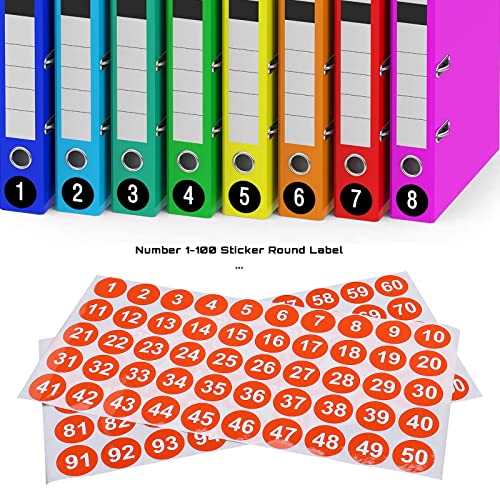 20 fogli da 1 a 100 numeri adesivi in vinile consecutivo, autoadesivi, marcatori impermeabili da 1 pollici, etichette adesive per classificazione dell'inventario nero e rosso