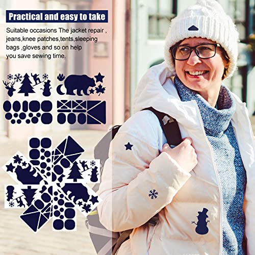 Diversi stili: le toppe in tessuto di riparazione lavabili sono dotate di diversi motivi come pupazzo di neve, orso, foglia d'acero, alce, zampa, fiocco di neve, luna, triangolo, cerchio, quadrato, rettangolo e altro, adatte per la riparazione di vestiti e possono essere belle decorazioni