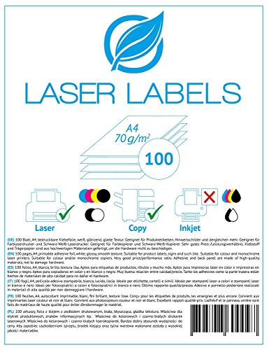 100 fogli, A4, pellicola adesiva stampabile, bianca, lucida, liscia