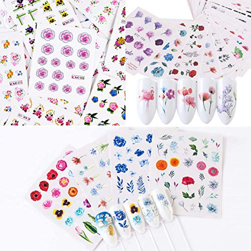 55 Fogli Stickers Unghie Nail Art,Liwein 3D Nail Art Stickers Adesivi Unghie Nail Art Stickers Unghie Autoadesivi per Decorazioni Unghie Stickers Unghie Nail Art