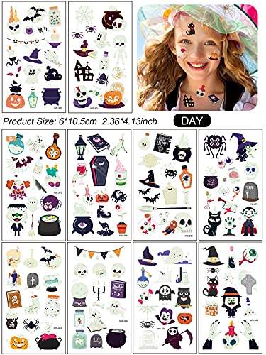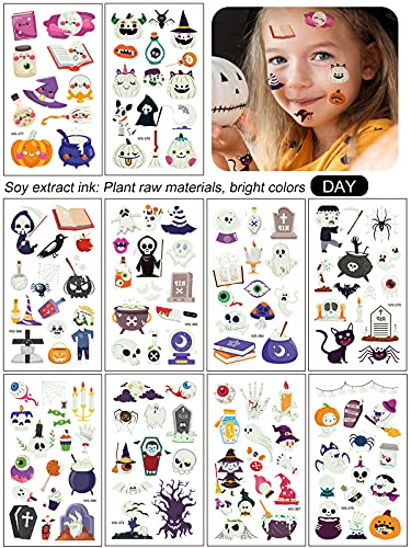 20 Fogli Tatuaggi Temporanei di Halloween per Bambini Adulti, EBANKU Tatuaggi Luminosi di Halloween Adesivi impermeabili per la Festa di Halloween Decorazione Forniture per Feste di Halloween