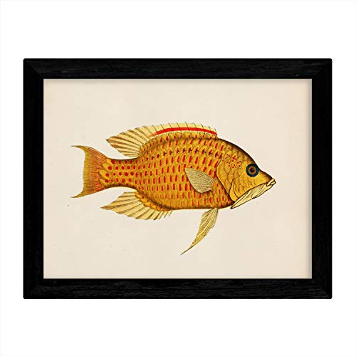 Set di 4 fogli con tono giallo vintage effetto pesce colorato. Composizione di 4 diversi pesci in misura A3, vecchia carta del poster della priorità bassa della carta dell'annata 250 GR . Con Marco.