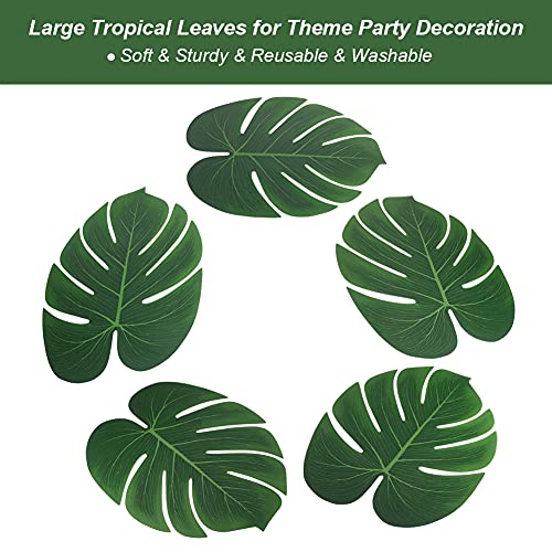 Foglie tropicali artificiali, foglie di palma finte, decorazioni per feste a tema giungla, luau, spiaggia, per compleanni, safari, balli di fine anno, feste nascituro, eventi (grandi, 12 pezzi)