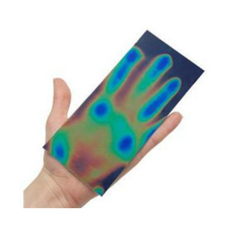 Pellicola adesiva su un lato con superficie a cristalli liquidi dall'altra. assume vari colori a temperature comprese tra 25 e 30° C. Grazie ai suoi cristalli liquidi, toccando un pezzo di pellicola termocromatica per alcuni secondi causerà un cambiamento di colore. Misura 15cm X 15cm Non è tossico o pericoloso. Foglio termocromatico costituito da un sottile strato di cristalli liquidi che è stato stampato su uno sfondo nero. I cristalli liquidi sono prodotti chimici organici che si espandono o contraggono. Mettendo la mano su questo quadrato nero di plastica si crea uno stampo termico;