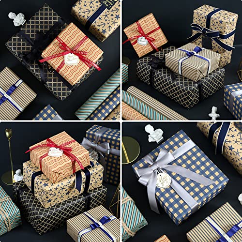 【Design Multi Pattern】 Ci sono 6 diversi design: griglia, strisce diagonali, strisce, increspature, griglie diagonali, ancore, 2 fogli per ogni colore. Una varietà di opzioni di design può soddisfare tutte le tue esigenze di confezione regalo.