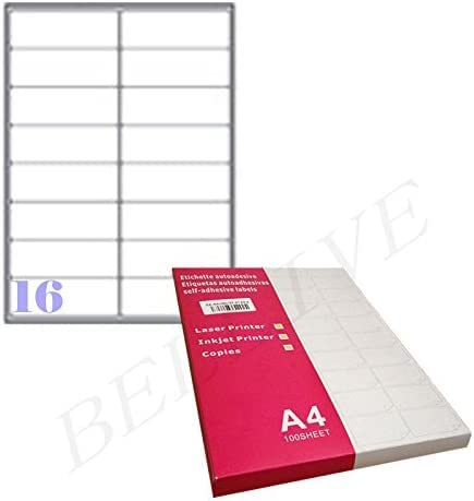 100 Foglio di Etichette adesive formato A4 165grammi 99,1X34mm, n.16 etichette per foglio