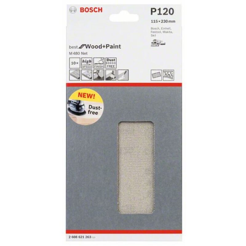 Rete Stray Foglia M 480 Net. Meglio per legno e vernice. Abrasivi per smerigliatrice battente. Dimensione foglia. Larghezza: 115 mm. Lunghezza: 230 mm. Grano 120. 10 confezione. -Polvere di rettifica con la M480 NET. La rete rettifica M480 netta consente una macinazione quasi priva di polvere e garantisce quindi un ambiente di lavoro pulito. intasamento minimo impedisce la diffusione di polvere abrasiva. accerta struttura aperta di rete. che la polvere abrasiva può essere aspirata su tutta la superficie. Ridotto tempo di pulizia a causa un'aspirazione efficace. Tipo di pavimentazione: blu corindone. Sottofondo del tessuto a rete ha funzionato. Adatto per le seguenti applicazioni: linee di verniciatura. Per l'abrasivo di rivestimenti e impurità. Per macinazione fine di conifere. Legno duro. Specie in resina e legno oleoso. Vernice e gesso. Per la macinazione di primer. Per i materiali: legno tenero. Legno duro. Specie in resina e legno oleoso. Vernice e gesso.