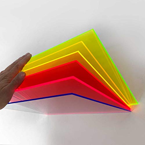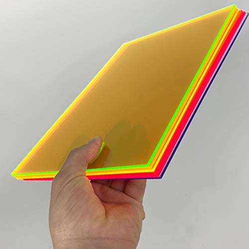 Foglio di plastica acrilica 3 mm | Confezione da 6 pezzi di colori fluo senza scrittura, formato A4 | Metacrilato fosforescente traslucido | Finitura perfetta |