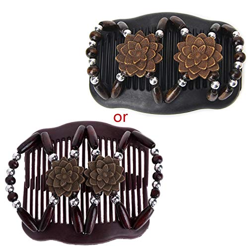 Fogun Fermacapelli con filo elastico, perline e due pettini di legno, color caffè