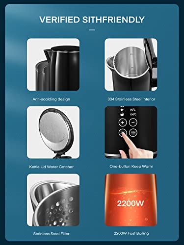 One-Touch LED Display Smart Bollitore - Dotato di tecnologia touch con display a LED, questo bollitore elettrico a temperatura regolabile sarà più durevole del tradizionale tipo a pulsante e molto semplice e facile da usare. La funzione keep warm di 4 ore mantiene la temperatura per 240 minuti.