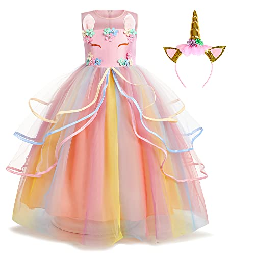 Foierp Unicorno Vestito Bambina, Costumi Unicorno Bambina Festa Cosplay Abito da Sposa Carnevale Ballo Abito Festa di Compleanno Vestito della Principessa