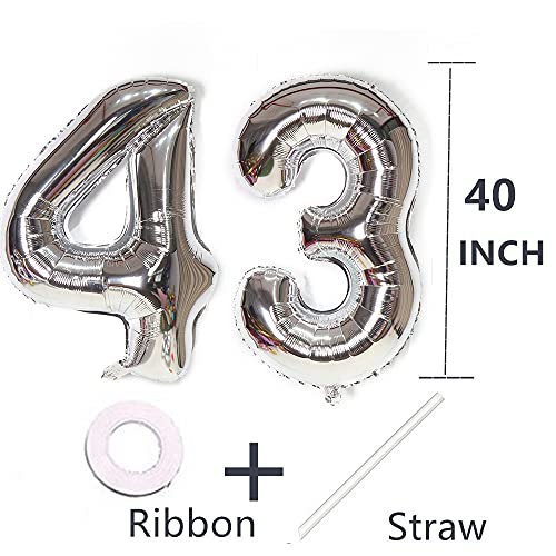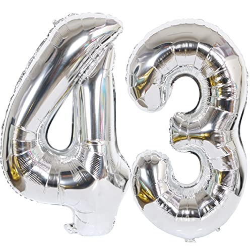 Foil Palloncini Compleanno 43 Anni argento Palloncino Numero 43,101 CM Giganti Palloncini Numeri 43 argento Palloncini 43 Anni Compleanno Decorazioni Compleanno 43 Anni Deco,Gonfiabili Elio Aria