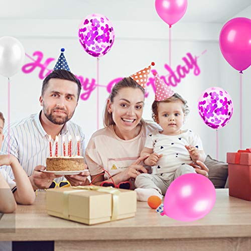 Foil Palloncini Numeri 1 Rosa, 1 Compleanno Decorazioni Bambina, Numero 1 Buon Compleanno Banner, Feste Decorazione di Compleanno Palloncino in Lattice Coriandoli Palloncini