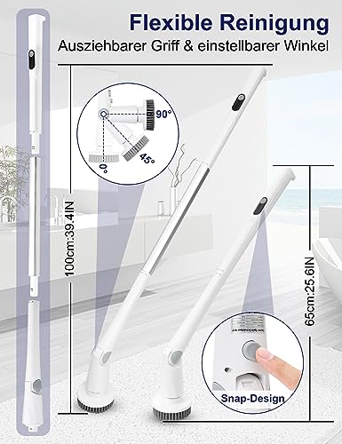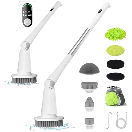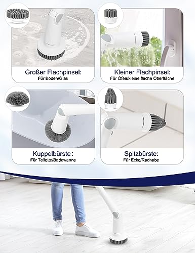 Foinwer Spazzola Elettrica Rotante,Cordless Spin Scrubber con 8 testine sostituibili, Power Shower Scrubber a doppia velocità, spazzola elettrica per la pulizia di pavimenti in piastrelle e vasche