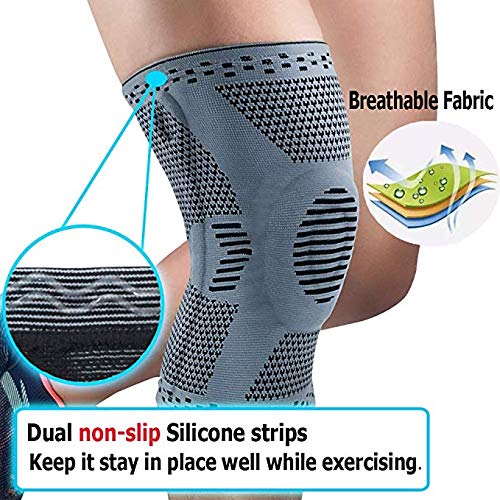 Tessuto 3D ad alta elasticità, più comodo. Realizzato in materiale premium, la manica di compressione del ginocchio può ridurre meglio il carico e la pressione sul ginocchio. Adotta la tecnologia di tessitura 3D, è traspirante, assorbente e ad asciugatura rapida. Ti aiuta a sentirti comodo nello sport. Prefetto di supporto per ginocchio per corsa, calcio, pallacanestro, sollevamento pesi, CrossFit, allenamento e altri sport.