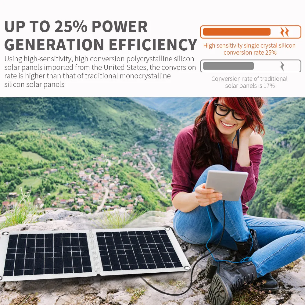 Foldable Solar Panel 60W Polysilicon 18V/12V Phone Charger Reusable Ooudoor Camping Hiking Battery Board Charging tool