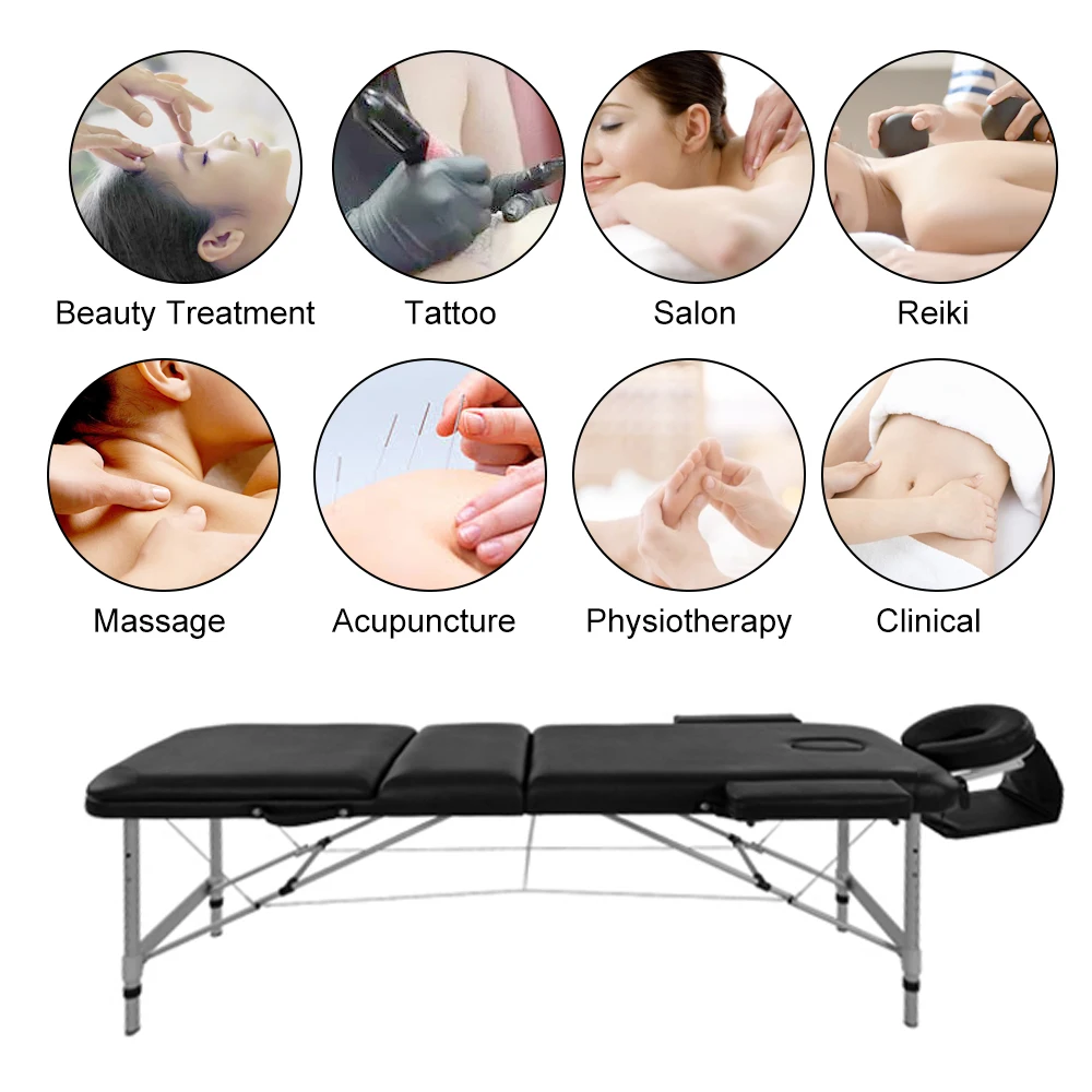 Folding Massage Table Lightweight Couch Bed Professional Beauty Tattoo Salon Spa Reiki 3 Section with Headrest Carrying Bag