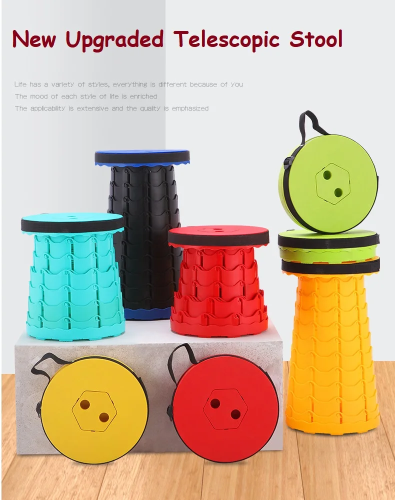 Folding Telescopic Stool Plastic Fishing Stool, Portable Travel Queuing Stool For Easy Storage