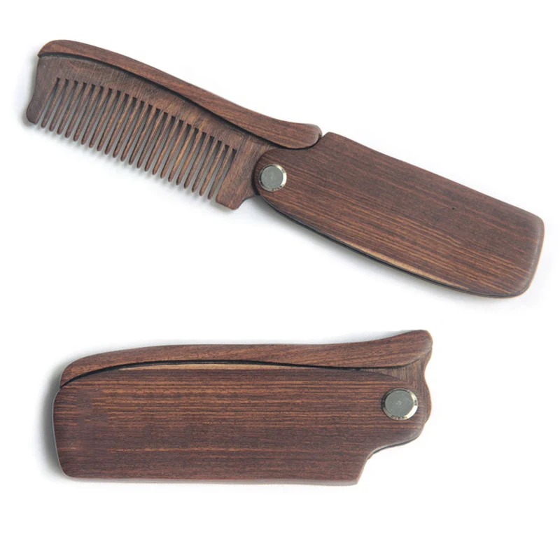 Folding Wooden Comb Men's Hair Beard & Mustache Comb Pocket Sandalwood Comb for Everyday Grooming Use with Balms and Oils