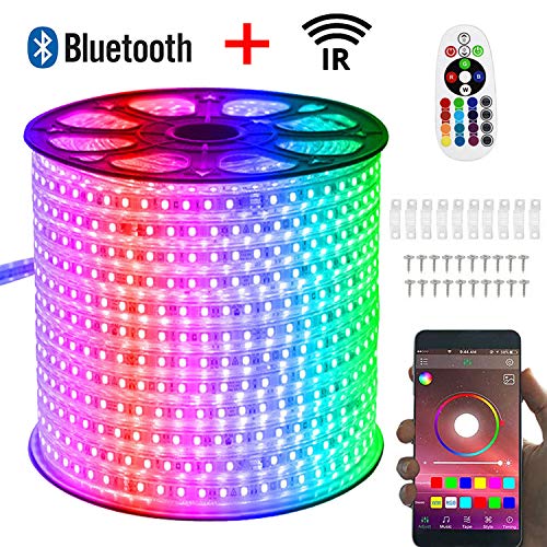 FOLGEMIR 30m striscia LED RGB, controllata tramite Bluetooth/APP, catena luminosa dimmerabile 230 V, 5050 SMD 60 LED/m, nastri impermeabile IP65 con trasformatore e telecomando IR