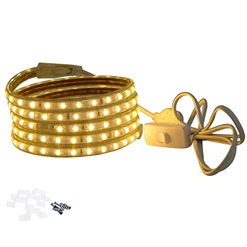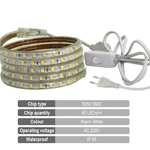 FOLGEMIR 3m Striscia LED con interruttore - bianco caldo, 220V 230V Strisce LED, 5050 SMD 60 LEDs/m, impermeabile IP65, retroilluminazione luminosa